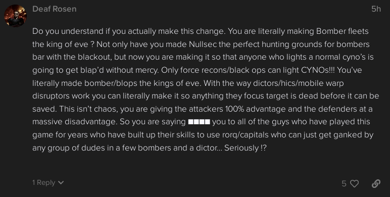 Well, friend, because I know that most of the nullbears spewing salt (such as the one you can read to the left) don’t want to read then let’s go through the reasoning. For such a fundamental change to cyno behaviour there has to be a good reason for it, right?