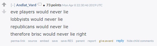 Hot diggity damn I was right. If you didn’t see the news that’s currently exploding on Reddit, Brisc, Pando, and Darkshines have all been unbanned by CCP. The official statement by CCP states that: