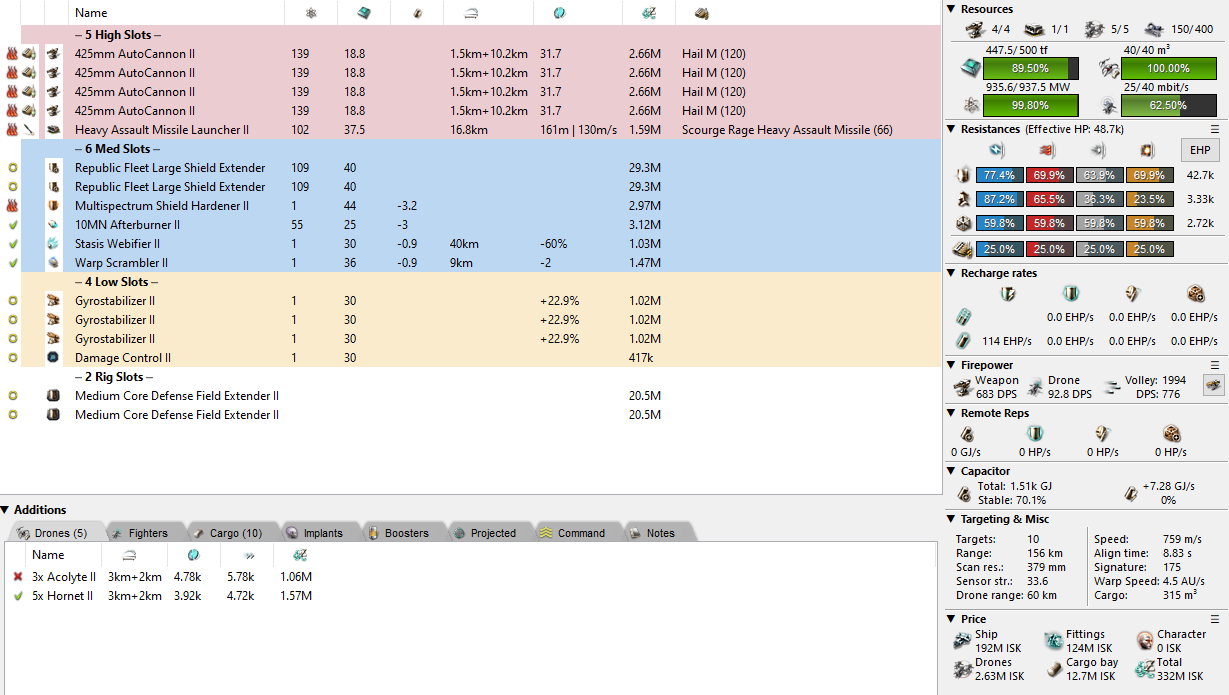 I want to get some basic fits out of the way regardless and I can probably do so by sharing some of the fits that we’ve recently adopted over at Foxholers as fleet doctrine. We’re using 10MN Phantasms with 100MN Scimitars, supported by 10MN Bifrosts and Storks. This whole doctrine is pretty slippery and hard to hold down while being surprisingly tanky. Under links the Phantasms even reach about 60k EHP and 2.6km/s.