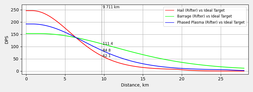 And also before we move forward, we need to talk about falloff range. It doesn’t really matter too much whether you bonus your Rifter towards range with Ambit Extensions, or more upfront damage with Burst Aerators/more Gyrostabilisers. Higher damage means that a large amount of DPS will fall off quickly, leaving you with x DPS. Higher range means that your lower DPS will fall off slowly, leaving you with x DPS too! The only time you need to be particularly concerned about this is if you choose to fight past the edge of falloff or, for some reason, within your optimal.