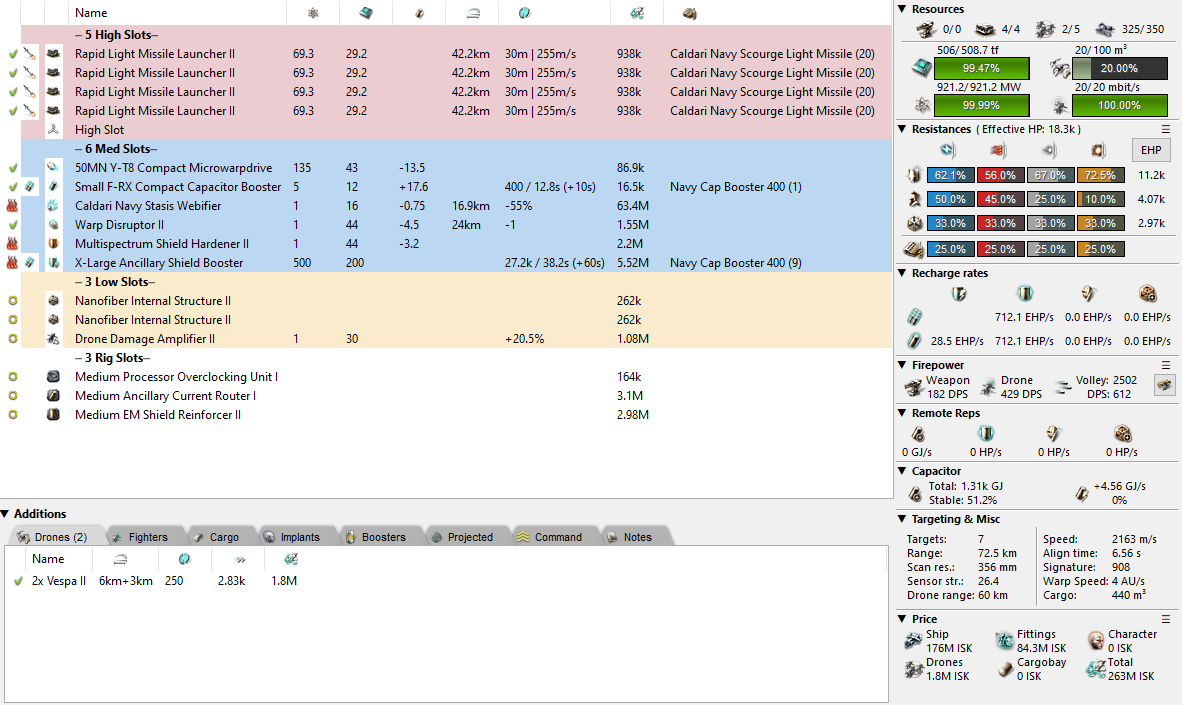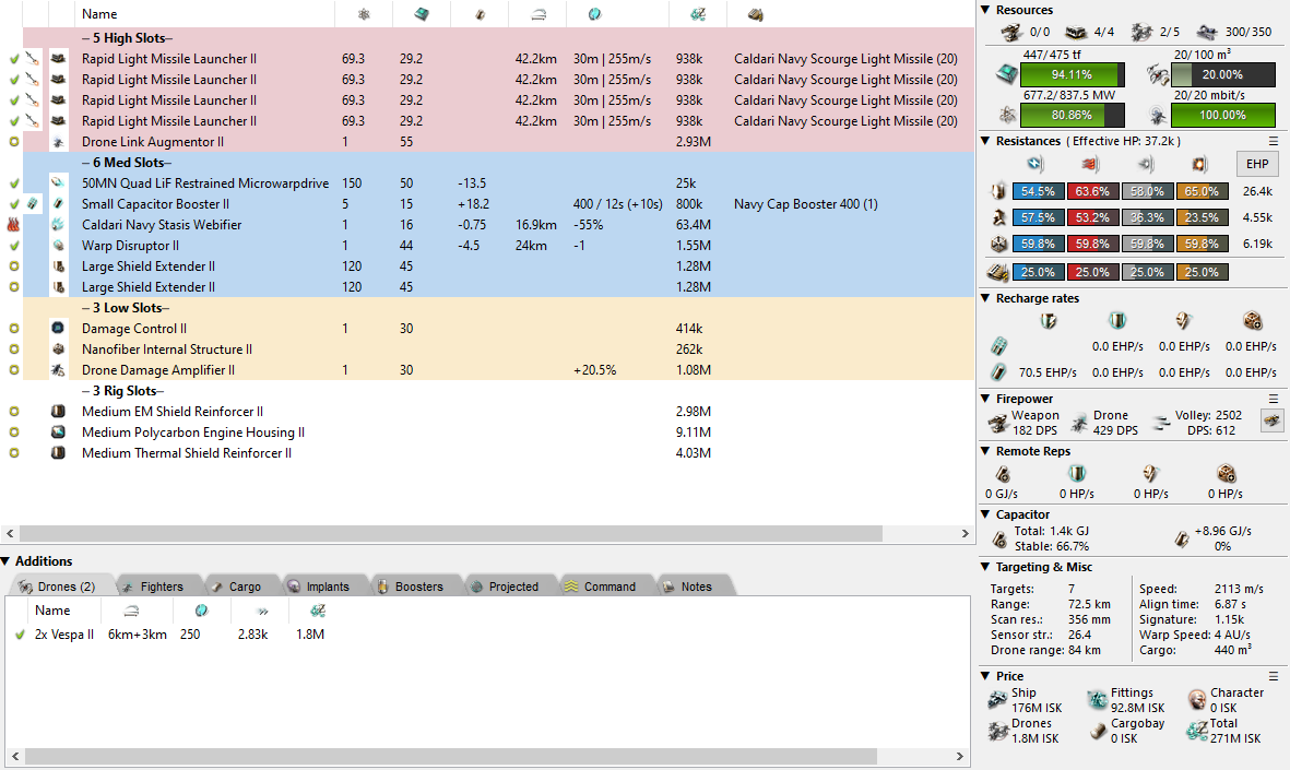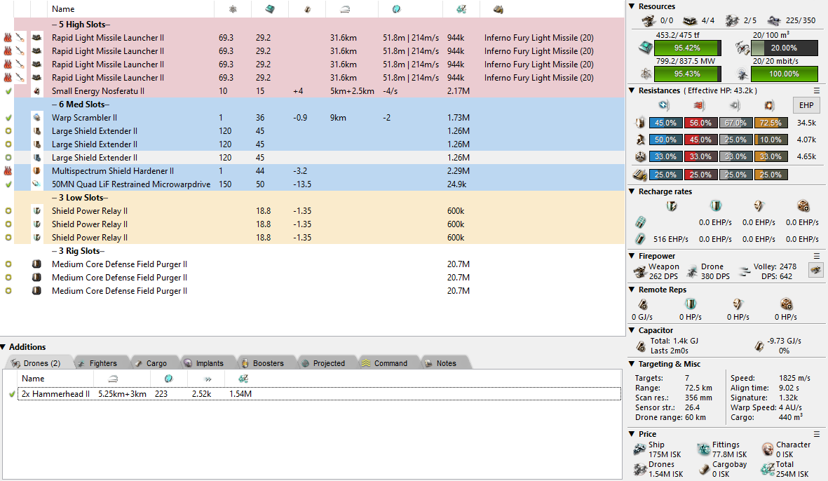Of course, there’s also the “standard” 100MN nullsec style fit that I spoke about in Outfitting a New Corp. You can see that all of this really just does what a Gila does, though. It is just damage and tank at drone range. Regardless, both of the kiting fits are linked below and can be customised slightly if you want to fiddle with the low slots.