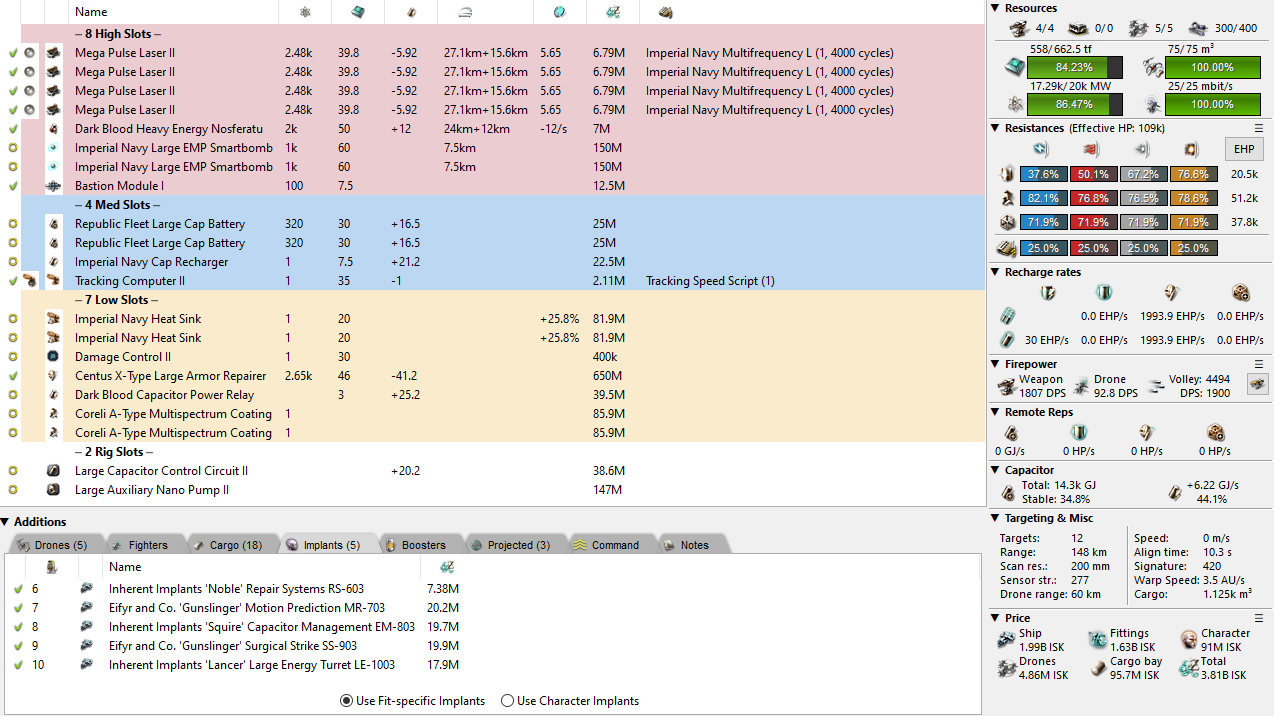 Worth noting that I feel something is missing here, I just welp’d a perfectly skilled Paladin to a Drifter. Eventually, you will cap the Drifter out with your nos. I would have killed him in exactly 14m32s (high grade asklepian/hw 5s), and I died about two thirds in. First half of the encounter went swimmingly, no cap issues, was very easily able to tank it and cap was easily stable at 33%, towards the end I started to notice I was getting less and less cap back from him. Later in the fight you’ll get no cap back from him at all.