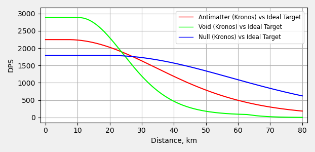 So why is that? Well for one, the range is horrible. At 20km which is a standard range for many Sleeper Battleships you do 1,250 DPS with Void. Two optimal range Tracking Computers will bump this up to 2,294 DPS which is much nicer. And before you ask, I did all the calculations on Void vs Null vs Antimatter. The sheer DPS increase of Void means that up to about 20km it remains the most effective if you can track well enough. Feel free to try Antimatter out, but I managed to use Void for almost an entire site without problems. Just make sure you load Null for anything past 25km.