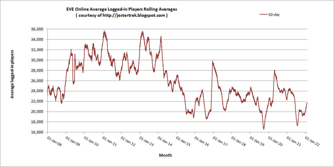 EVE Online’s current trajectory is unsustainable. As for what CCP could or should do to turn it around, it’s difficult to say. What is certain, however, is that whatever form it takes needs to be exciting and needs to somehow recreate the growth period of 2006-2013. I’ve not done the research to figure out what that truly means, but I hope someone at CCP has.